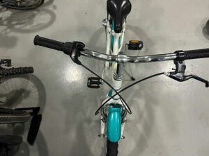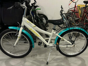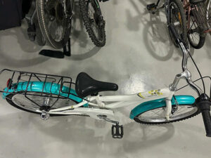 White blue bicycle with 3 easy conversion gears The car has been cleaned and all parts inspected and maintained. In addition, the exterior has been repainted and looks as good as new.